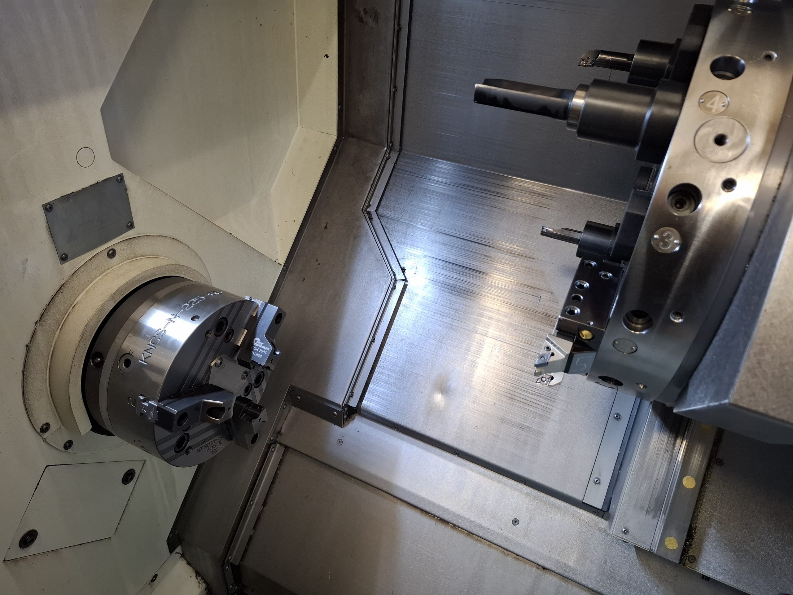 Für die Drehbearbeitung stehen drei CNC-Drehmaschinen ebenfalls des Herstellers DMG MORI mit angetriebenen Werkzeugen zur Verfügung. Auch diese Maschinen werden von der Siemens 840D mit Shop Turn Oberfläche gesteuert. Darüber hinaus führen wir manuelle Dreharbeiten auf unserer L&Z-Drehmaschine mit 3-achsiger Digitalanzeige und stufenloser Drehzahlregelung aus.